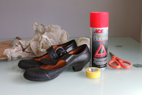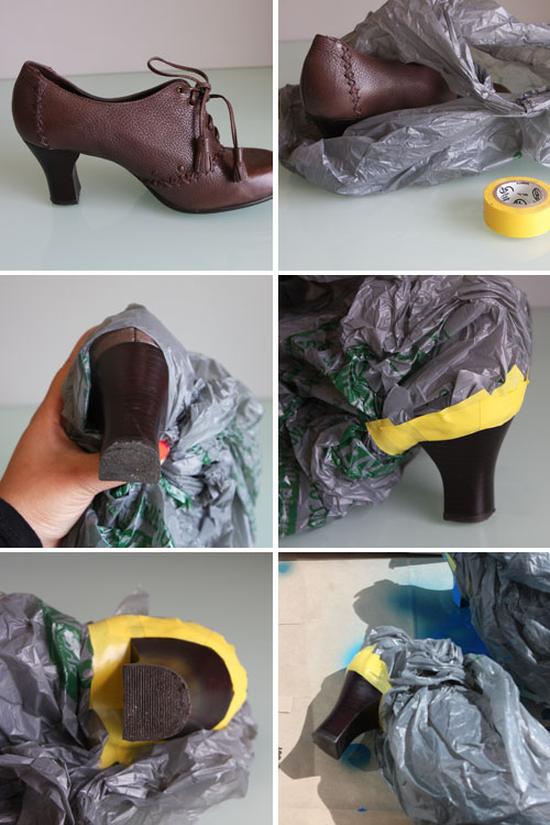 Now, go outside and spray paint away! You'll need 3 coats of spray paint for each heel.