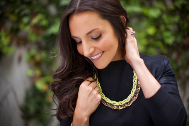 8.Rope and Rhinestone Necklace: This might be my favorite statement necklaces that we’ve ever made. Period. Neon yellow cord makes it stand out from the crowd without overwhelming the sparkling rhinestone trim, so it’s wearable to work as well as out on the town.
