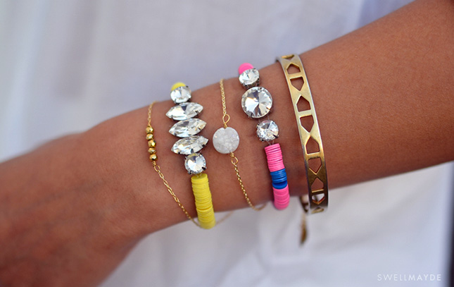 7.Rhinestone Vinyl Bead Bracelet: am way into the bold look of this sparkly eye candy. Love the look too? Give it a shot!