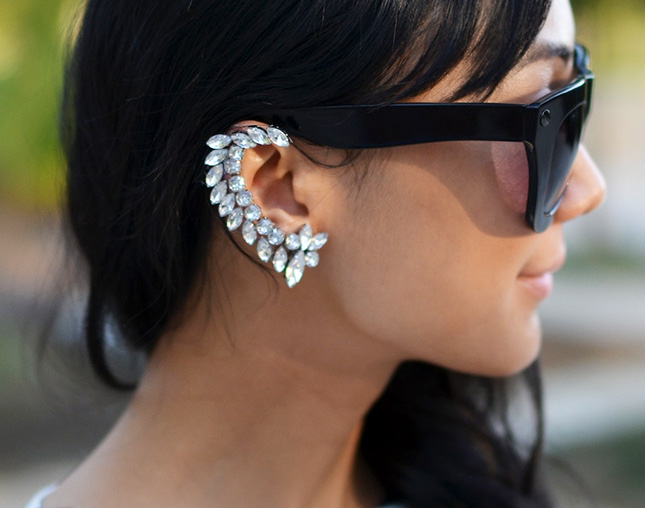 2. Rhinestone Ear Cuff: I have to admit, the ear cuff is a trend that we still haven’t tried ourselves, but if we were gonna rock this edgy look, this is the way we’d do it. It looks red-carpet worthy with wavy, side-swept hair.